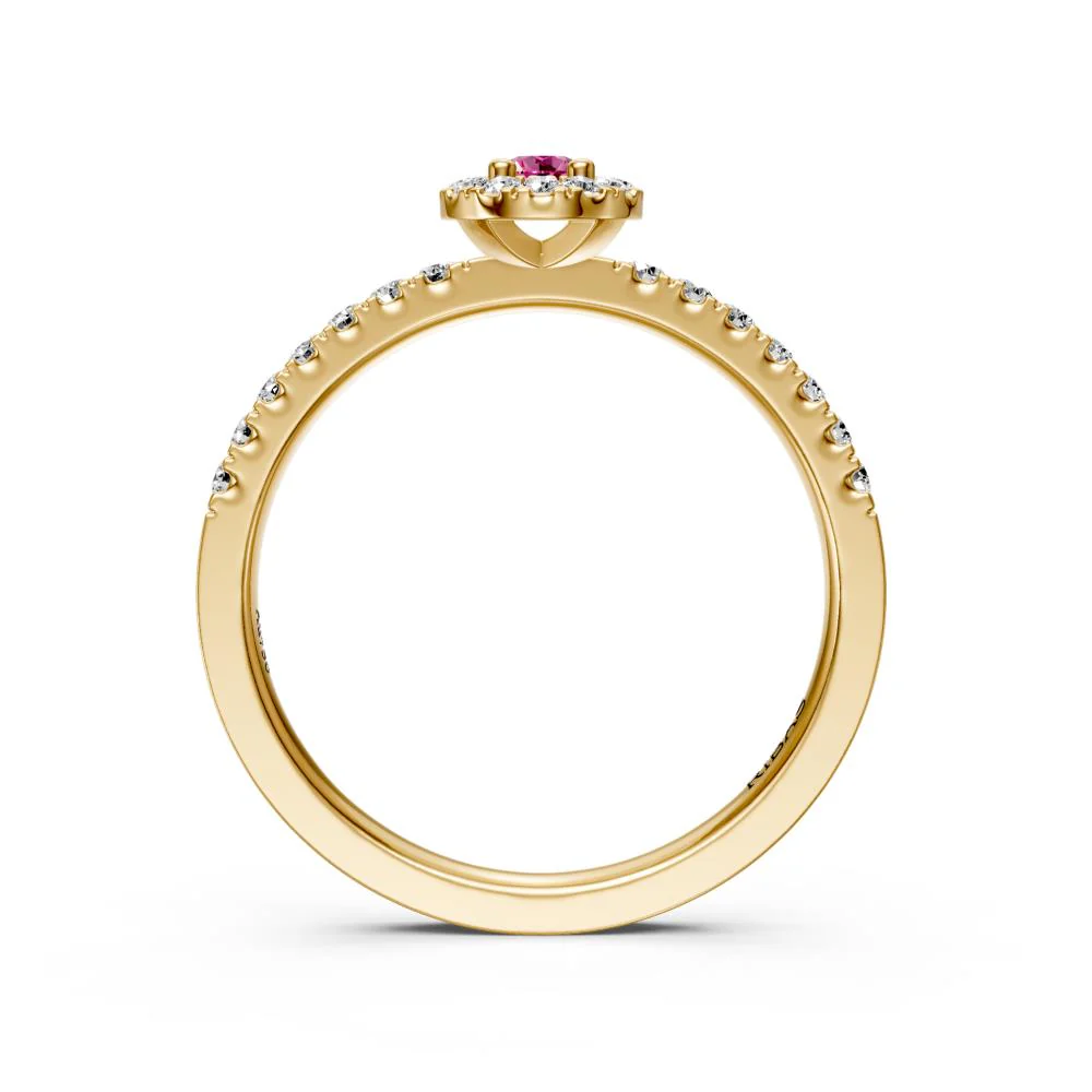 -70%Geltono aukso žiedas su rožiniu safyru ir deimantais—