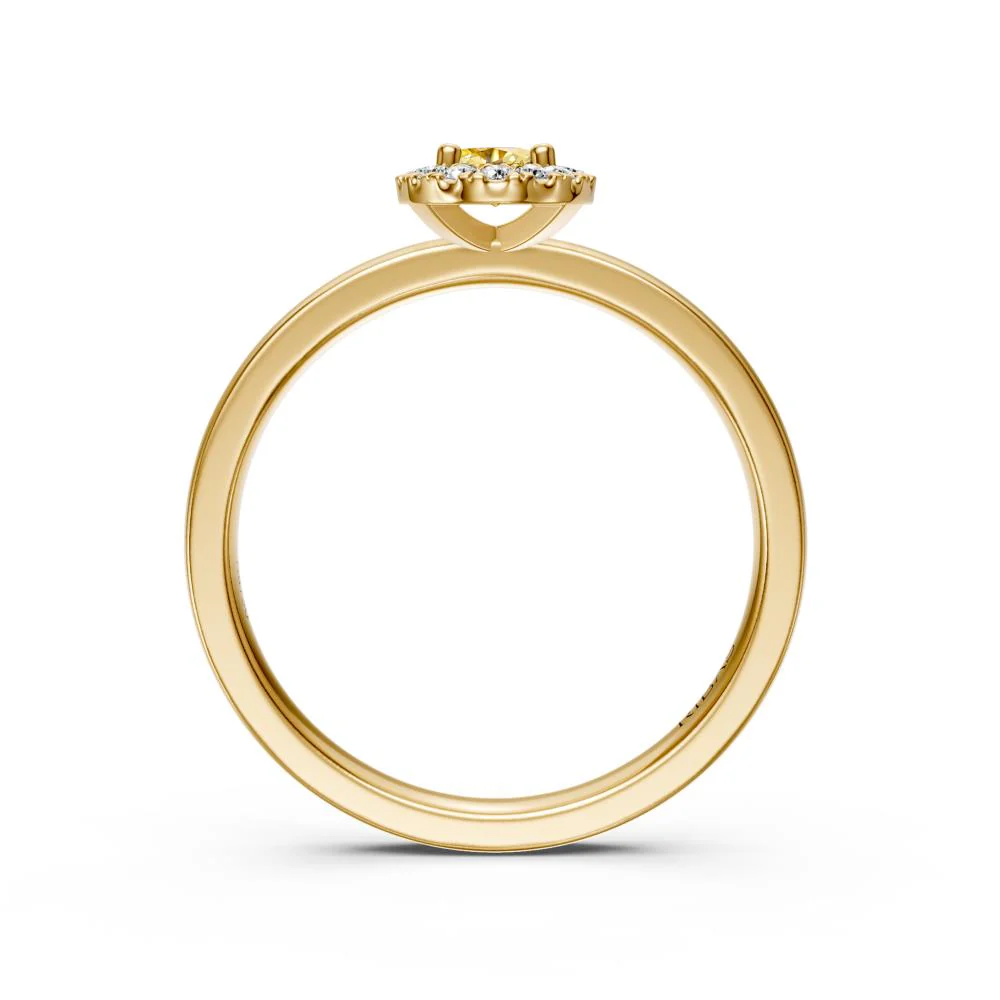 Geltono aukso žiedas su geltonu safyru ir deimantais—